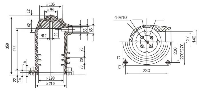 觸頭盒為環氧樹脂APG工藝壓力凝膠成型結構,用于各種手車式開關柜,起絕緣隔離和聯接過渡作用。