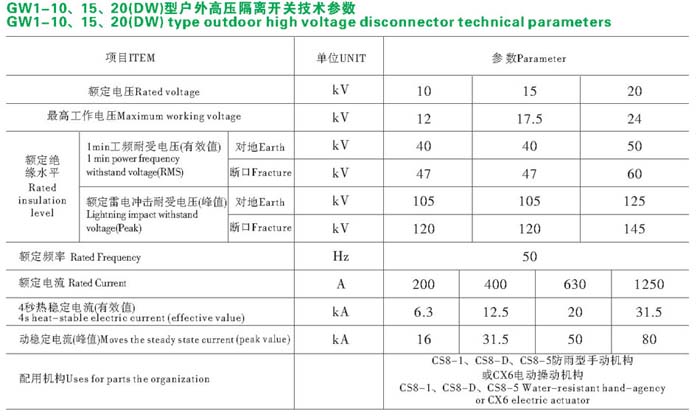 GW1-10隔離開關是供戶外高壓電氣設備在無負載而有電壓的情況下分合電路之用。隔離開關是由三個完全相同的單極組成,它可以單極或三極使用,當三極使用時中間用管軸聯接。GW1-10戶外高壓隔離開關用CS8-1或CS8-5型等手力操動機構操動。
