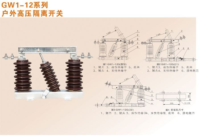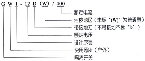 產品的電器和機械性能符合國家標準GB1985《交流高壓隔離開關和接地開關》的規定要求。其中型號包括:GW1-12/200A,GW1-12/400A,GW1-12/630A,GW1-12/1000A,GW1-12/1250A;防污型:GW1-12W/200A,GW1-12W/400A,GW1-12W/630A,GW1-12W/1000A,GW1-12W/1250A; GW1-12型單接地:GW1-12D/200A,GW1-12D/400A,GW1-12D/630A,GW1-12D/1000A, GW1-12D/1250A;