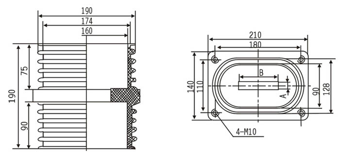 TG3-10Q中置柜套管為環氧樹脂APG工藝壓力凝膠成型結構,外形結構尺寸大小為128(100×100)mm、高225mm。主要適用于額定電壓為10KV及以下的成套設備中,作絕緣隔離和聯接過度之用。套管耐污及潮濕,無需特別維護,只需定期地清理表面污質。安裝時母排從孔內穿過。