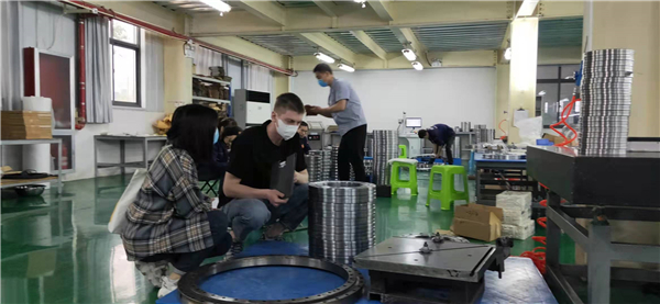 參觀過程中,西班牙客戶親手調試檢測我們的軸承產品,并給與高度的評價和認可。我們博盈軸承一直以來專注于精密軸承的設計、研發、制造和銷售,多年來不斷鉆研技術,突破提高軸承性能,打破YRT轉臺軸承及高精度交叉滾子軸承的技術壁壘,產品遠銷海外,獲得眾多國內外客戶的認可與肯定。