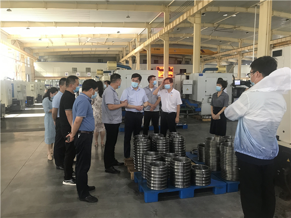 魏險峰副市長一行到我司后,實地了解我司主營的交叉滾子軸承、YRT轉臺軸承和交叉圓錐滾子軸承生產情況。公司領導魏紀偉介紹了企業遷入產業集聚區后的經營情況和企業的未來發展規劃。